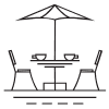 – Pool house avec cuisine d’été : îlot-bar, évier, vaisselle, lave-vaisselle, micro-ondes, bouilloire, machine Nespresso, réfrigérateur et plancha